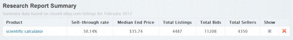 Currently the total number of bids for scientific calculators is 11,208 which is a good indicator that you have a potential market!